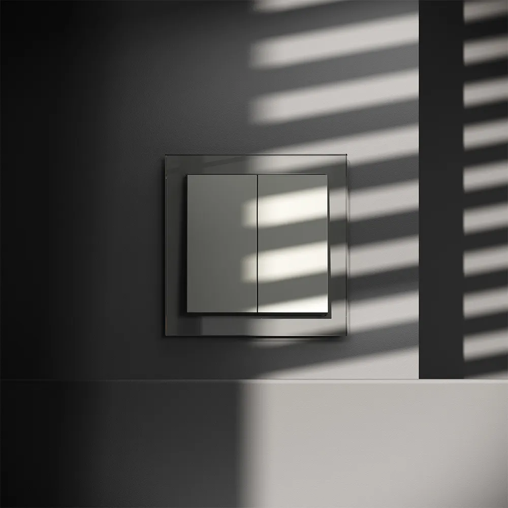 Выключатель полностью совместим с рамками из пластика и закалённого стекла той же серии и гармонично сочетается с другими устройствами VOLTUM S70 — от розеток до терморегуляторов и датчиков движения.