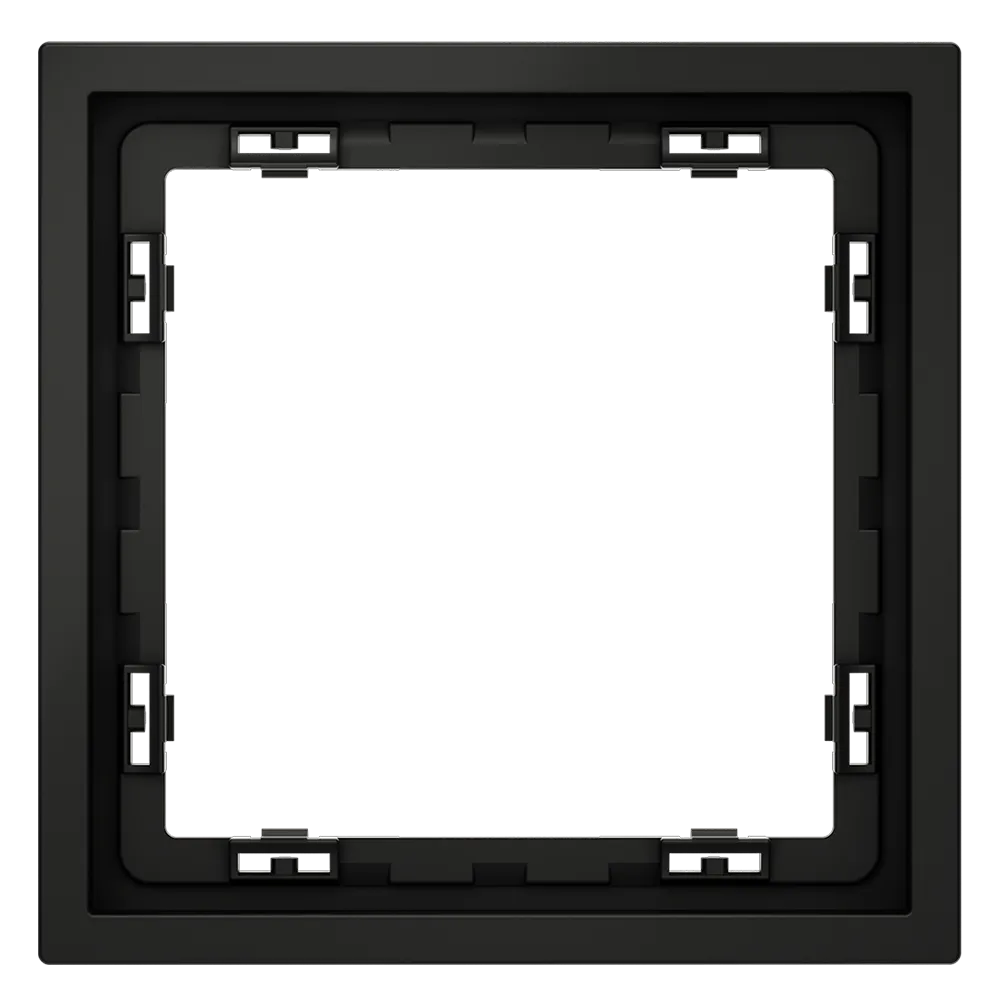 Обеспечивает быстрое и легкое соединение механизма с рамкой. Восемь фиксаторов по периметру нивелируют неровности стены и надежно удерживают конструкцию.