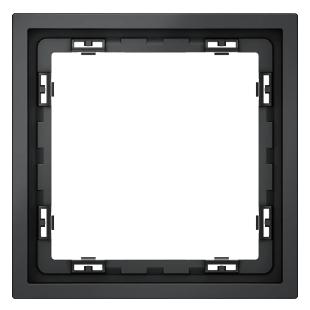 Обеспечивает быстрое и легкое соединение механизма с рамкой. Восемь фиксаторов по периметру нивелируют неровности стены и надежно удерживают конструкцию.